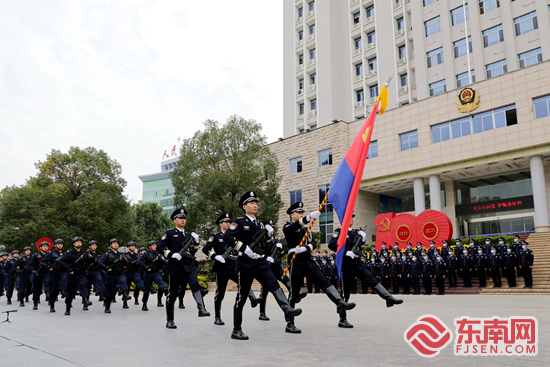 分列式。安溪县公安局 供图 东南网1月10日讯(本网记者 陈培源 通讯员 蔡斯艺 陈伟明)10日上午,安溪县公安局举行第二个“中国人民警察节”庆祝活动。 迎着清晨的第一缕阳光,庆祝仪式正式开始。“出警旗!”随着指挥员的一声令下,威武雄壮的《中国人民警察警歌》响起,全体民警精神抖擞、警容严整,雄姿英发的护旗卫队昂首挺胸,迈着整齐有力的步伐进场,全体人员面向警旗庄严敬礼。