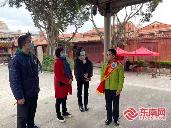 小讲解员向游客介绍天后宫。 学校 供图 游世遗景点 介绍福建特色文化 这四名来自北京的游客,是在天后宫游玩时被该校红领巾小讲解员们带到送春联活动现场。“我们学校毗邻德济门遗址、天后宫等世遗景点,平时会组织学生参加讲解。寒假期间,我们希望通过学生把具有福建特色的世遗景点介绍给游客与市民们。”学校校长蔡晓芹介绍道。 除了带游客们走入世遗景点外,小讲解员们还带着游客前往周边景点李贽故居观看。“我主要向游客们介绍李贽的生平事迹及思想,我在讲的时候叔叔阿姨们听得很认真,我感觉非常有成就感。”四年级小讲解员陈政昀告诉记者。 在听其他同学介绍天后宫时,陈政昀发现与自己中规中矩的讲解相比,同学“聊天式”的讲解更加吸引人。春节期间,他要自己准备德济门遗址讲解内容,在下一次志愿服务活动中,用“聊天式”的讲解向游客介绍德济门遗址。 蔡晓芹表示,这是“双减”之下的首个寒假,在条件允许的情况下,春节过后学校还将继续组织开展志愿服务活动,让孩子们走入身边的世遗景点,向游客介绍富有福建特色遗产景点;并组织老师上门家访,将新春祝福送到各个家庭。 |