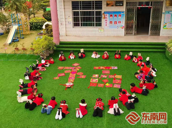 参加活动的孩子用作品摆成“福”字。 永春达埔镇 供图