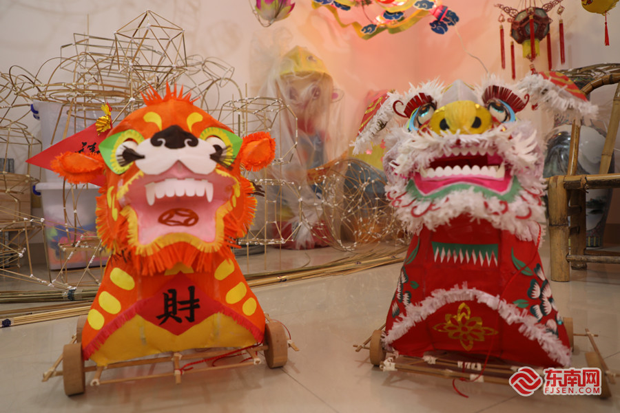 陈晓萍制作的花灯,左为“如虎添‘亿’”花灯。东南网记者 施远圻 摄