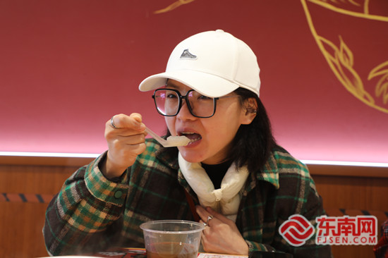 来自台湾的殷女士品尝泉州元宵圆。东南网记者 施远圻 摄 寓意圆满美好 元宵圆成送人佳礼 除了购买元宵圆及元宵圆内陷,虽未到正月十五,不少市民、游客也提前品尝元宵圆,香甜可口、外皮细腻的元宵圆也收获不少好评。 来自台湾的殷女士第一次品尝到泉州元宵圆,她用“好吃”“特别”对泉州元宵圆做出评价,并用手机拍照记录下来。今年春节期间,殷女士选择来泉州旅游,通过查找美食攻略,她来到海丝金凤门店,原本只点了一碗小汤圆。老板娘陈霞凤在与她聊天中,为了欢迎她,便送上一碗寓意着“团团圆圆”的元宵圆,让她品尝。 “元宵圆寓意圆满美好,我准备买些送给我老婆的娘家亲戚。”来自莆田的施老伯告诉记者,他老婆的娘家在晋江市安海镇,他足足买了两大袋。 据了解,除了在线下销售外,线上销售非常火爆,“有很多在外打拼的泉州人和海外华侨,受到疫情影响难以返乡,但又思念家乡味道,就通过网购来买元宵圆。”林金鱼说道。