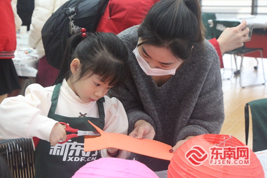 家长与孩子共同制作花灯。东南网记者 谢玉妹 摄 |