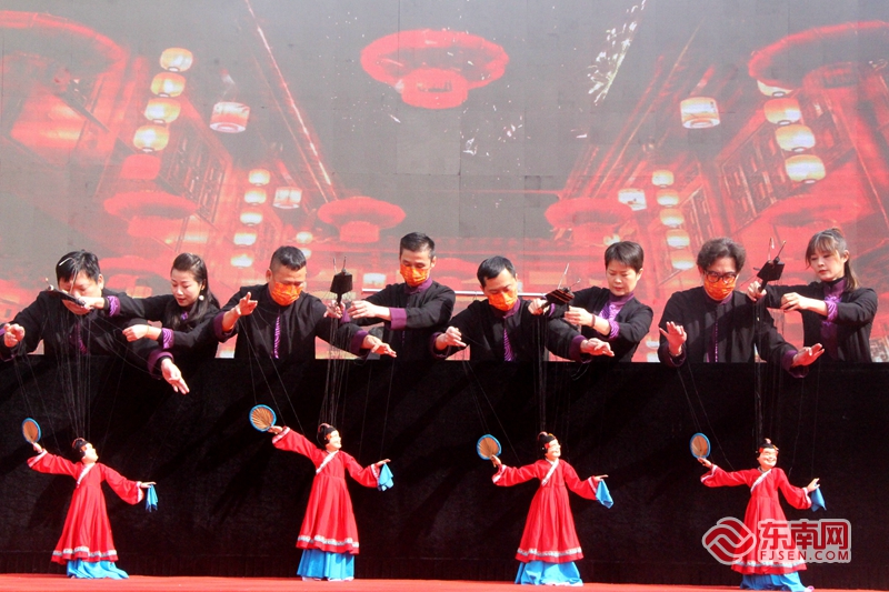 泉州提线木偶戏。东南网记者 谢玉妹 摄 东南网2月15日讯(本网记者 谢玉妹)花灯庆佳节,福气临古城。2月15日正值上元灯节,“虎年福见·世遗泉州:我在东海送全福”主题“福”文化活动在泉州府文庙前广场举行,邀八方来客同赏千盏华灯,共品南管戏曲,共同祈愿福星高照。 闽南歌舞、泉州提线木偶戏、新编南音……一个个充满闽南风情的“福”文化文艺演出,让这座世遗之城洋溢着浓浓的元宵喜乐氛围。来自多个海丝沿线国家的泉州籍侨胞、留学生,以及台胞、企业家等各界代表参加活动,并和现场的市民一起收到了喜气洋洋的“福”字结和“福虎”花灯。 作为拥有千年历史的文化古城、世遗名城,泉州的福文化底蕴深厚,以“福”字命名的福地遍布全市。据不完全统计,泉州带“福”的地名多达600多个,祈福活动渗透市民生活的方方面面,成为闽南文化、海丝文化不可分割的重要内容。“此次活动的举办是积极响应省委号召的重要举措,对传承弘扬‘福’文化具有重要意义。”福建省委常委、泉州市委书记刘建洋表示,泉州将进一步发掘“福”文化资源,擦亮“福”文化标识,建设“福”文化载体,推动“福”文化走出去,不断增进港澳台胞和海外侨胞的认同感、归宿感、自豪感;进一步推动海丝文化、闽南文化、创造性文化创新性发展,打响“宋元中国·海丝泉州”,不断提升泉州的美誉度与国际影响力。 |