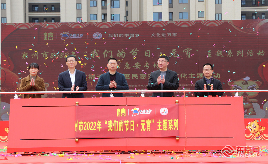 泉州市2022年“我们的节日•元宵”主题系列活动惠安启动。 东南网记者 林杰 摄 三大福文化主题活动献礼元宵 邻里和谐闹元宵,福满人间共团圆。启动仪式结束后,一场“福”文化文艺表演随即上演。女声独唱《好运来》、诗歌朗诵《月光下的中国》、惠安风情舞蹈《潮汐》、闽南语合唱《阮是闽南人》、情景表演《常回家看看》……一系列各具特色的文艺节目轮番上阵,让在场的观众充分感受节日团圆的浓厚氛围。 猜“福”谜、挂“福”灯、赠“福”卡、拓“福”字、展“福”品、寻“福”图,在“福满元宵 福见惠安”集福传福活动现场,群众参与现场猜谜、制作悬挂“福”灯笼、体验非遗项目拓“福”活动、寻“福”拍照打卡等等,现场氛围热烈、祥和、喜庆。 同样地,在“福满元宵 福见惠安”趣味游戏活动区,“套圈”“气球运杯”“投靶游戏”“双人运球”等游戏也深受小朋友喜爱,大家一边体验趣味小游戏,一边学做汤圆和制作花灯,共同欢度元宵佳节。 “惠安自古有祈福盼福、崇福尚福的传统,今天的系列主题活动诠释了传统福文化内涵,寓教于乐传承民俗,丰富了群众精神文化生活。”主办方有关人员说。 本次活动由惠安县委宣传部、惠安县委文明办、惠安县文旅局、惠安团县委、惠安县妇联、 惠安县文联协办,黄塘镇党委政府、黄塘镇新时代文明实践所承办。