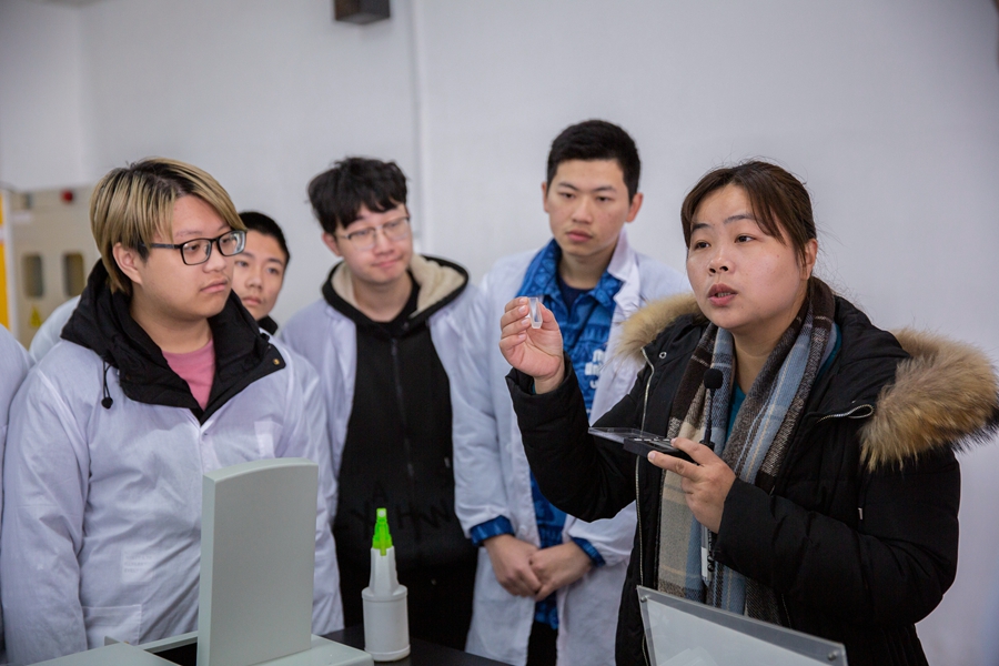 走出《机械原理》的理论课程,来到能源学院《仪器分析》课堂,曾燕真老师带石油化工专业学生开展沉浸式教学,学生们在一台台专业仪器前面,感受仪器分析、化学分析以及仪器检测的特点。“这堂课要求学生在样品处理过程,要有科学严谨的学习态度,养成良好的学习习惯,为接下来一年的学习做好新的开端。”
