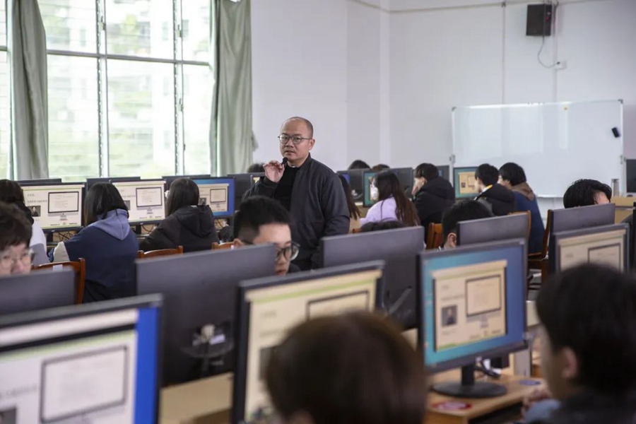 “徘徊过多少窗口,驻过多少内存/才会觉得01也并不简单/代码是用来浏览,还是用来珍藏……”通过这一首歌词,蔡老师告诉同学们在编程学习中,Python语言是如何转移成C语言的。他说,开学第一课是一道开胃菜,他通过这种改变歌词的方式,提升同学们对课程的兴趣,让同学们喜欢课程、爱上课程。