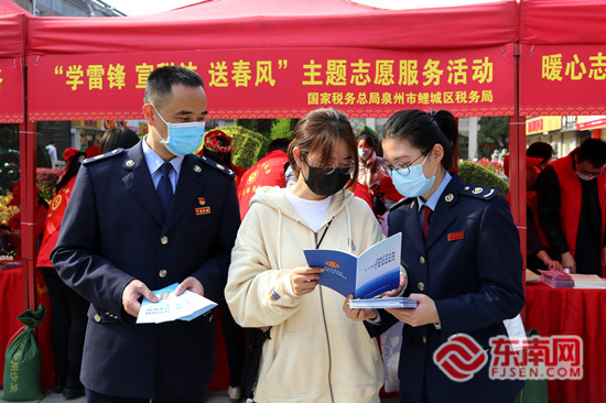 鲤城税务志愿服务队志愿者为前来咨询税费政策的市民答疑解惑。 蔡冰滢 摄 东南网3月4日讯(本网记者 薛逸群 通讯员 张彧 蔡冰滢)3月3日,在全国第59个“学雷锋纪念日”到来之际,鲤城区税务局积极响应号召,组织“古城美 税务心”鲤城税务志愿服务队参加以“弘扬志愿服务精神 深化文明城市创建 助力‘双轮驱动’实施”为主题的全国第59个学雷锋纪念日活动暨深化第七届全国文明城市创建志愿服务动员大会,开展“我为群众办实事”暨“学雷锋 宣税法 送春风”志愿服务活动,充分发挥党团力量,以实际行动书写弘扬雷锋精神,树立税务新风。 “之前对医保、社保有关事项还一知半解,听了你们的讲解,我弄懂啦!”前来咨询税费政策的王女士说道。活动现场,鲤城区税务局设置了有奖竞答互动环节,寓学于乐,让市民朋友在答题的同时轻松掌握更多的税收知识。税收志愿者们还担当税收宣传员,通过面对面答疑、发放宣传册等方式,提供“靶向式”服务,根据纳税人、缴费人的咨询问题精准辅导税费优惠政策,为往来纳税人、缴费人普及增值税、个税、社保缴费等政策。 据悉,鲤城区税务局作为全国文明单位培育对象,以“古城美 税务心”志愿服务项目常态化开展学雷锋志愿服务活动,时刻对标纳税人缴费人所需所盼,发动党员、团员、青年干部投身税收宣传和服务优化,积极参与新时代文明实践志愿服务活动,持续开展鲤税开讲进百企、税收宣传进校园等“我为群众办实事”系列活动,给纳税人缴费人带来实实在在的获得感,让便民办税“春风”常吹常新、吹出“鲤”味。 |