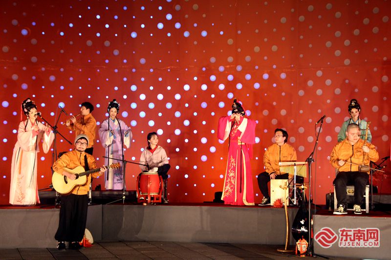 古今融合,为观众呈现出别具一格的演出。东南网记者 谢玉妹 摄 此外,演奏乐队通过对《爱拼才会赢》《随缘》等经典曲目的全新演绎,展现出泉州朝气蓬勃的文艺新气息;《梨园戏十八步科母》为观众带来美妙的梨园戏七大行当的科步展示;《万疆》祝愿祖国繁荣昌盛;《蓝蓝泉州湾》唱出泉州人民海纳百川、敢拼会赢的气魄…… 一首首耳熟能详的歌曲引起了现场观众的共鸣。“梨园戏的声音一出来,我就感觉非常悦耳动听,这种全新演绎、老歌新唱的方式很独特。”住在附近小区的泉州市民石女士当晚特地带着孩子来观看演出。石女士认为,这是一种很好的艺术形式,能让更多的市民参与其中,也能让住在新区的小朋友从小受到传统艺术的熏陶。 “这种演出方式很有泉州特色,能唱出泉州人自己的声音!”在获悉演出信息后,新泉州人潘女士与朋友们结伴前来观看,她直言,希望泉州能在各个不同地方多举办类似演出,让更多泉州市民和外地游客听到“尚好听”的泉州音乐。 “梨园戏是在泉州‘土生土长’的戏曲,已有800年的历史了,这几年,我们开始尝试古今融合的新表演形式,有了不一样的呈现。”福建省梨园戏传承中心的青年演员廖淑云从13岁开始学习梨园戏,对这项闽南传统戏曲有着深厚的感情。“希望传统艺术与流行艺术的碰撞能带来不一样的火花,能更多元地展现梨园戏,让更多年轻观众知道,虽然这种戏曲很古老,却蕴含着蓬勃生命力,也可以很时尚。” |