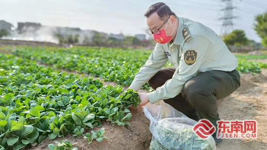 泉州西所菜地里采摘的70斤青菜根据实际需求分配到其他所站食堂。 泉州高速 供图
