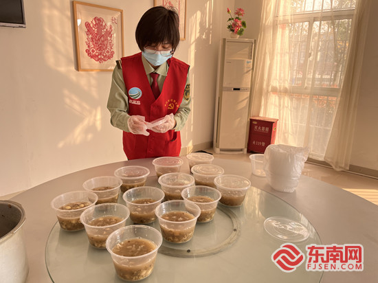 志愿者为防疫工作者煲制银耳汤。 泉州高速 供图