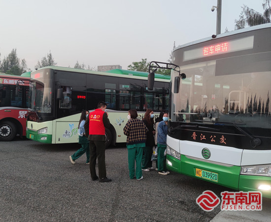 志愿者主动上前为援泉医护人员提供帮助。 泉州高速 供图
