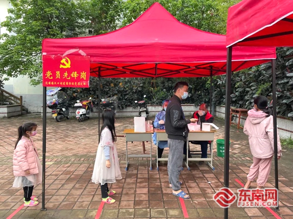 核酸采样现场保持一米距离。达埔镇 供图 党建引领,网格管理。达埔镇以防控为责任,坚持党建引领网格化管理,所有党员干部下沉一线,发挥党员先锋模范作用。挂片工作组成员常驻各村,常态化开展“补网”行动, 进村入户“扫楼、扫街、扫地”,确保核酸检测“不漏一户,不落一人”。各村积极发挥“网格化+大数据+监督举报”机制,及时摸排重点地区人员。各村严格落实属地责任,严格管控居家医学观察和居家健康检测对象,做好监督管理工作。 宣传引导,造浓氛围。“不扎堆,不聚集,不走亲,不访友,不在外面到处走,出门必须戴口罩,人多别去凑热闹……”村里的高音大喇叭轮番播放“土味”广播。党员志愿者骑着电动车,载着广播器到各个乡间小路去宣传。沿街的店铺全部关闭,党员志愿者巡街劝导在外群众多居家、戴口罩、不聚集。沿街店铺的LED广告牌全部播放疫情防控宣传标语,达埔镇积极营造出浓厚的疫情防控宣传氛围,加强广大村民的疫情防控意识并积极配合疫情防控工作。