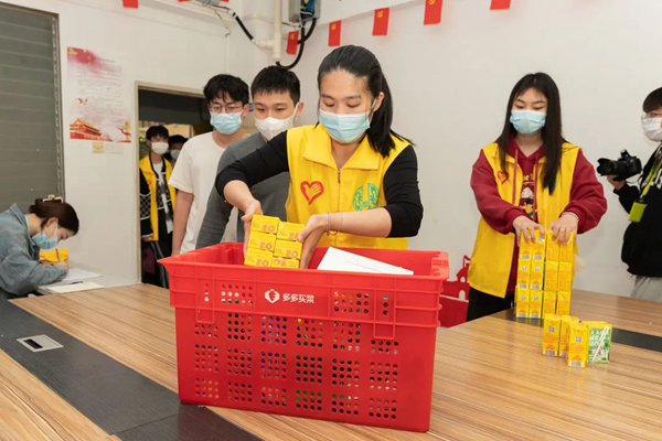 每场核酸检测现场,都有王秋玲(左二)忙碌的身影 这段时间,书院所有人奔波在各个学生宿舍,化身通讯员、外卖员、卫生工,了解学生需求,帮学生采购各种必需品,团队之间的分工更加明确,各分队也进入工作状态,消毒消杀、卫生保洁、送餐服务、配送物资等也有了具体的工作方案和实施流程,使得严格封控期间的书院卫生及学生的学习生活都有了较好的保障。 3月21日书院启动严格管控措施当天,因通知临时变动,一些同学未能及时叫餐,书院老师就第一时间买了十几箱泡面和50个汉堡放在大厅里,提供给未及时用餐的同学。而同学们知道后,也纷纷把自己平时多买的可乐、王老吉、菊花茶等饮料拿到书院大厅,在家隔离的同学也委托舍友将自己宿舍的零食送下来,免费供应给有需要的同学自取。 还记得第一个送饮料下来的是一个很腼腆的男生,他把饮料拿给辅导员后转身就走,后来才给我们留言说是想给有需要的同学。很快,陆陆续续就有很多同学送下来各种各样的饮料,共有几百瓶,他们都不愿意留下自己的名字。但我们知道,他们都是一善人,幸而有你,与善同行。有你们同在,真好!