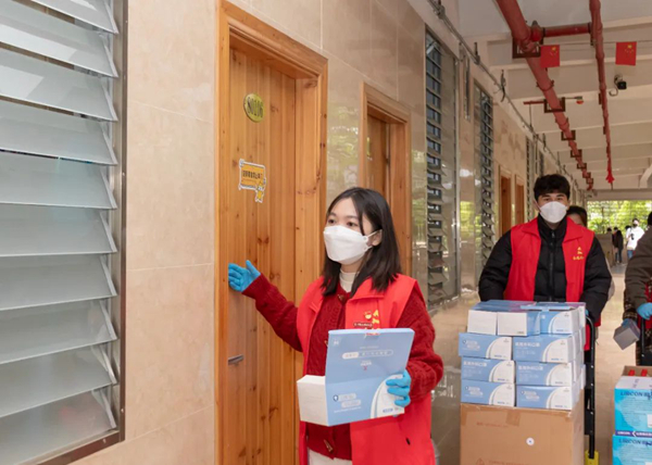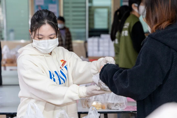 我们积极响应学校疫情防控号召,上门服务,迅速派发口罩、消毒液、消毒喷壶、抗原自测工具包、抗疫爱心大礼包等物资到各宿舍。与此同时,无接触、一站式餐饮配送拉开帷幕。通过教师志愿者配送到书院,再经过接收、统计、分拣、通知、送达……每天都有成百上千份的餐品,通过大家的双手转送到每位学生的手上。 有人呐喊:“疫情偷走了我们的青春!”其实,每个青春都有自己的故事,每个故事都有它小小的遗憾,而你在那些小小遗憾里的努力,会让青春的岁月更加的煜煜生辉。疫情在我们的花季年华留下了深刻的一笔,但我们要记住的是,在2022年春天来临之际,它也让我们更加懂得了团结和互助的光芒。 艰难时段,师生情、同学情给了它释放的渠道。同学们,当我们以后回望这段时光,我们会因自己努力参与、配合抗疫而感到欣慰,遗憾不会成为疫情时期的主旋律。希望你们调整好状态,涵养自身,沉淀思想,不负学业。