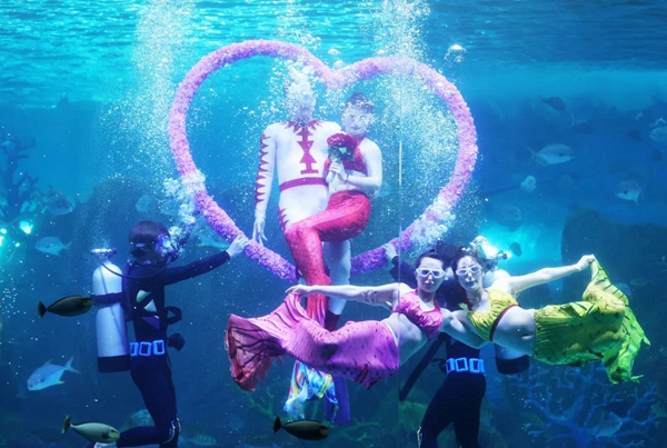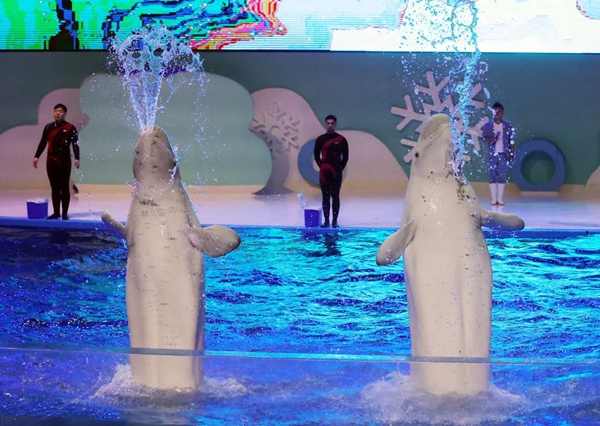 她向记者介绍,在这一个多月的时间里,虽然没有开园,但员工潜心修炼了众多技能,如水下剧场的美人鱼姑娘们编排了一套水中八仙赐福新节目;海豚馆、鲸鱼湾表演馆的同事们,和“合伙搭档”们培养了更多的技能和才艺展示;外籍乐队也编排了更多精彩纷呈的节目。大家都憋足一股劲,就期待着开园后为游客朋友们呈献上出彩的表演。