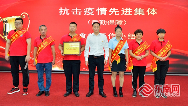 为抗疫先进集体颁发奖匾。晋江工行 供图 |