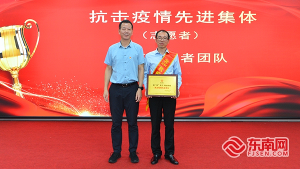 为抗疫先进集体代表颁发奖匾。晋江工行 供图