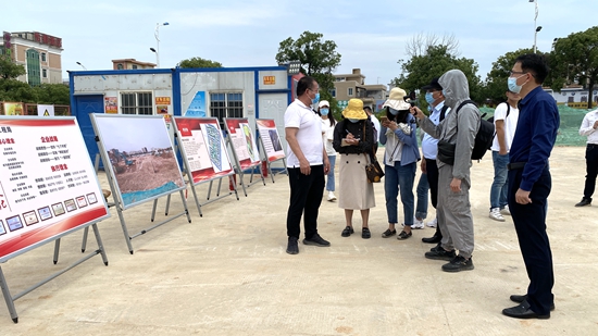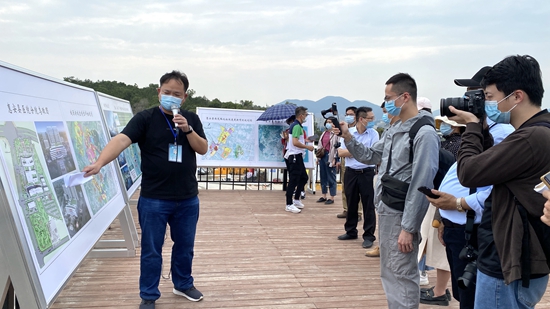 工作人员向采访团介绍项目进展。东南网记者 林杰 摄 |