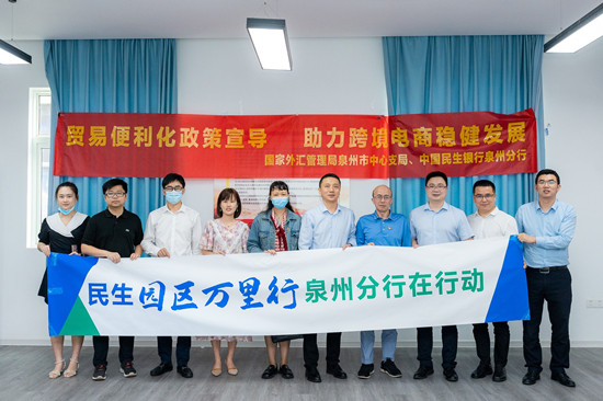 “园易民生 相伴万里” ——贸易便利化政策宣导 助力跨境电商稳健发展 为助力小微企业发展,服务跨境金融,近日,国家外汇管理局泉州中心支局携手民生银行泉州分行走进东海跨境电商园园区,开展“园易民生 相伴万里”活动。国家外汇管理局泉州市中心支局外汇管理科黄晓阳科长、李毓芳副科长,民生银行泉州分行行长助理傅增庭,领秀集团(产业)板块副总经理许怡临、领秀集团东海跨境电商生态圈项目副总经理黄灿阳及园区30余家跨境电商企业代表共同参会。