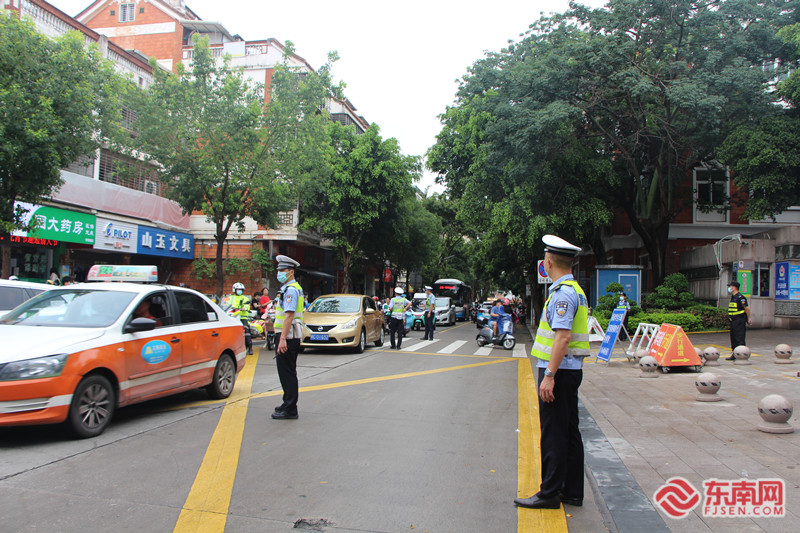 泉州市培元中学考点外交警、志愿者各司其职,为高考考生保驾护航。东南网记者 施远圻 摄