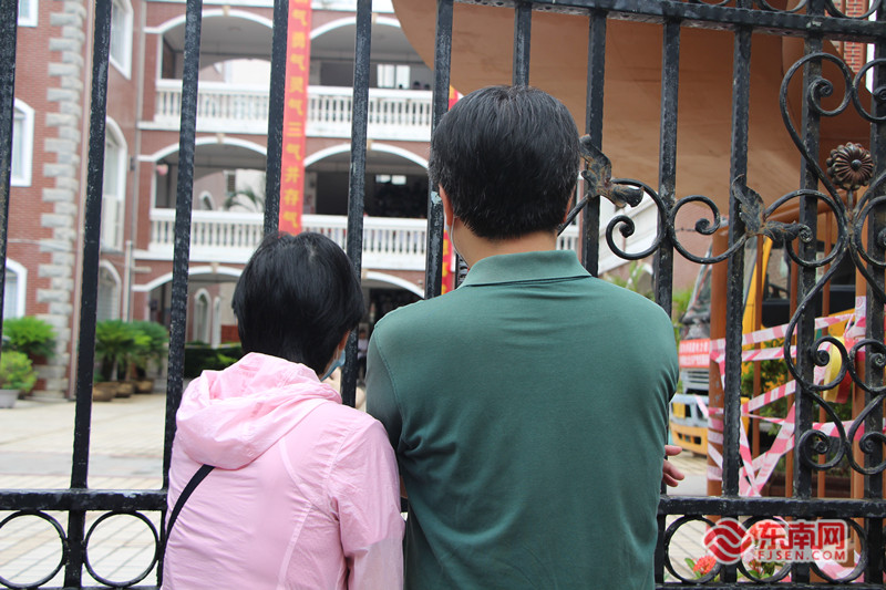 泉州市培元中学考点外,两位家长在栏杆外目送孩子进入考场。 东南网记者 施远圻 摄 |
