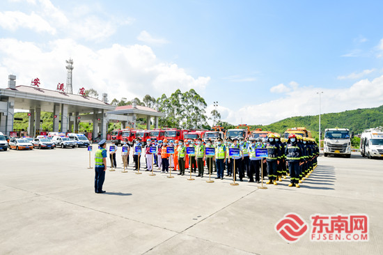 模拟演练现场。孙奕贤 供图 东南网6月30日讯(本网记者 陈诗婷 通讯员 孙奕贤)6月29日,福建省高速公路特长隧道危化品运输车辆事故应急演练在甬莞高速福建省泉州段石鼓山隧道举行。演练中,除了首次联合高效应急处置以外,还首次结合舆情应对处置模拟。活动共投入大小设备70多部,无人机2架,并首次动用“大红牛”消防机器人、生态环境应急车、气象应急车等装备共同参与联合救援演练。 事故模拟6月29日10时05分,甬莞高速福建省泉州段石鼓山隧道BK854+950米处,发生货车与危化品运输车辆追尾相撞的道路交通事故,事故导致前车罐体运载的危化品泄漏,肇事货车着火无法继续行驶,运载的PVC材质货物被引燃,事态呈进一步恶化趋势。接到报警后,各相关部门迅速行动赶赴现场救援,交警、高速综合执法、消防到达现场后成立现场临时指挥部对事态进行安全评估,解救被困人员、制定应急救援方案,启动应急预案。 在事故模拟设定中,货车司机被困,危化品运输车辆装载的是危化品二甲基甲酰胺,这是一种有机化合物,为无色透明液体,对人的眼、皮肤和呼吸道有刺激作用,并能与浓硫酸、发烟硝酸猛烈反应,甚至发生爆炸。针对以上情况,通过现场指挥部统一指挥,消防人员兵分多路,搜救组人员穿着灭火防护服,佩戴空气呼吸器通过对向车道的人行横洞迅速前往事故点进行灭火,破拆组人员携带破拆工具迅速前往事故点,查看事故货车内的受伤人员情况;现场救援组还派出大功率履带式消防机器人“大红牛”前往现场对危化品车进行灭火、降温和稀释处理,并使用破拆工具救出货车司机。高速综合执法、交警部门疏散事故点滞留的车辆和人员,医疗人员赶赴现场,全力救助伤员。 |
