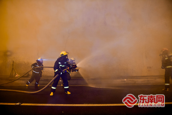 模拟演练现场。孙奕贤 供图 受伤人员救出后,消防、环保、气象等部门对事故现场进行安全评估,为后续车辆施救提供施救条件。在现场指挥部指挥下,清障救援组对事故车辆施救拖离。生态环境局专家对环境进行评估,评估确认后,交警、高速综合执法部门靠近事故现场,对事故发生情况进行勘查,分析事故原因,记录损失。养护人员用油污清洗剂对路面进行除油处理,洒水车对路面进行彻底清洗,交警、高速综合执法等部门确认可以恢复交通。随后,路面恢复正常通行,历时一个小时的“救援行动”圆满结束。 现场总指挥表示,举行福建省高速公路特长隧道危化品运输车辆事故应急演练,是贯彻落实习近平总书记关于安全生产重要论述的实践行动,也是聚焦“提高效率、提升效能、提增效益”的关键举措,更是深度契合安全生产月活动主题的一次重要活动。此次演练参演单位响应及时、指挥高效、分工明确、配合默契、处置合理,有效检验了地方与高速公路应急处置联勤联动工作机制,为我们应对特长隧道突发事件应急处置积累了实战经验,达到了预期效果。 本次演练由福建省应急管理厅、福建省交通运输厅、泉州市人民政府、福建省高速公路集团有限公司、福建省公安厅交警总队主办,泉州市应急管理局、泉州市交通运输局、泉州市消防救援支队、安溪县人民政府、省高速公路集团有限公司泉州管理分公司、省公安厅交警总队泉州高速公路支队、福建交通应急广播承办;安溪县应急局、安溪县交通运输局、安溪县消防大队等13家单位共同参与。