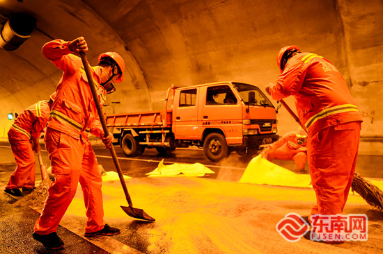 模拟演练现场。孙奕贤 供图 受伤人员救出后,消防、环保、气象等部门对事故现场进行安全评估,为后续车辆施救提供施救条件。在现场指挥部指挥下,清障救援组对事故车辆施救拖离。生态环境局专家对环境进行评估,评估确认后,交警、高速综合执法部门靠近事故现场,对事故发生情况进行勘查,分析事故原因,记录损失。养护人员用油污清洗剂对路面进行除油处理,洒水车对路面进行彻底清洗,交警、高速综合执法等部门确认可以恢复交通。随后,路面恢复正常通行,历时一个小时的“救援行动”圆满结束。 现场总指挥表示,举行福建省高速公路特长隧道危化品运输车辆事故应急演练,是贯彻落实习近平总书记关于安全生产重要论述的实践行动,也是聚焦“提高效率、提升效能、提增效益”的关键举措,更是深度契合安全生产月活动主题的一次重要活动。此次演练参演单位响应及时、指挥高效、分工明确、配合默契、处置合理,有效检验了地方与高速公路应急处置联勤联动工作机制,为我们应对特长隧道突发事件应急处置积累了实战经验,达到了预期效果。 本次演练由福建省应急管理厅、福建省交通运输厅、泉州市人民政府、福建省高速公路集团有限公司、福建省公安厅交警总队主办,泉州市应急管理局、泉州市交通运输局、泉州市消防救援支队、安溪县人民政府、省高速公路集团有限公司泉州管理分公司、省公安厅交警总队泉州高速公路支队、福建交通应急广播承办;安溪县应急局、安溪县交通运输局、安溪县消防大队等13家单位共同参与。 |