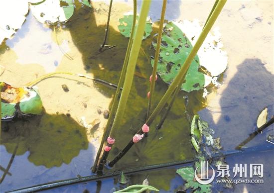 云龙谷荷花池有不少福寿螺和螺卵(陈明华 摄) “哇!这是什么鱼,能吃吗?”近日,中心市区东湖公园第二次组织工作人员捕捉荷花池内严重危害荷叶生长的俗名为“清道夫”的鱼。负责荷花池养护的老苏介绍,20条地笼沿着池塘岸边放下去短短1天时间就抓了100多斤清道夫。这一情况引起了许多市民和游客的围观,但他们大多数并不认识清道夫,更不明白其危害。实际上,清道夫属于外来入侵物种,在我国几乎没有天敌,其繁殖速度快,严重时可导致整条河流的本地原生鱼类灭绝殆尽。 那么,泉州有哪些常见的外来入侵物种?这些物种入侵的渠道和危害都有哪些?相关部门又如何防范治理?对此,记者进行了调查了解。 案例 外来入侵物种,是指传入定殖并对生态系统、物种带来威胁或者危害,影响我国生态环境,损害农林牧渔业可持续发展和生物多样性的外来物种。在泉州,湖中快速繁殖的清道夫、疯狂生长的互花米草、啃食荷叶的福寿螺等都是常见的外来入侵物种。 挖掘机“海上漂” 围剿千亩互花米草 水上挖掘机在海滩上行动自如,一片片互花米草被铲除深埋……6月底以来,一场没有硝烟的战斗在泉州湾南岸石狮段打响。石狮市采购第三方服务,启动为期4个月的泉州湾(石狮段)互花米草清理工程。早在2013年,石狮市就开展了互花米草的清理项目。但2017年以来,由于泉州湾上游晋江和洛阳江河口区存在较多的互花米草未整治铲除,导致下游石狮海域复发互花米草,并持续蔓延。截至今年5月,泉州湾(石狮段)互花米草约有1380.2亩待清理。 福寿螺大量繁殖 秧苗荷叶惨遭啃食 6月初,永春县横口乡郭先生家的水稻秧苗遭福寿螺啃食近半,损失惨重。郭先生和父亲两人在一垄两平方米的稻田里捡拾福寿螺,不一会儿就捡起上百只。后在农技人员指导下,福寿螺大多已被消灭。 近日,记者走访德化云龙谷发现,荷花池里部分荷叶漂浮在水上,荷叶上布满了大大小小的洞。走近一看,在荷叶梗上、池壁都能看到附着着红色的福寿螺卵,而在池底轻易就能看到或大或小的福寿螺,有的正在“啃食”着荷叶梗。 红火蚁毒性强 男子被咬后休克 7月10日下午,惠安一男子在野外游泳时被红火蚁咬伤突然休克。幸好被及时发现,当地120及时赶到处理并送医。据目击者吴先生介绍,男子大约40岁,平时经常到水库游泳,应该是在岸上时就被红火蚁咬到,下水后不久,红火蚁毒性发作导致昏迷。