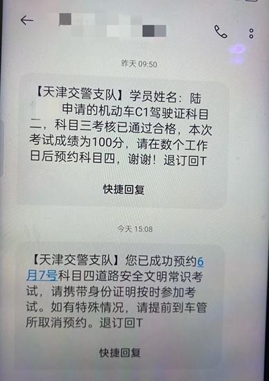 ▲聊天记录 步步为营:补交费用越来越多 事情的顺利程度超乎想象。就在费用缴交不久后,车没摸过、考场位置都不清楚的陆女士就陆续接到冒充交警发来的前三个科目通过的短信。沉浸在即将拿驾照的喜悦中,陆女士并未发现危险正在靠近。 “通过短信”还没捂热,对方便开始行动了:需要补交科目四的报名费6000元。因前三个科目无需考试就能“通过”,陆女士对补交费用毫无防范,立刻交了6000元。