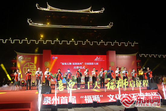 “福见石狮 镜艳海丝”全国摄影大展启动仪式。东南网记者 谢玉妹 摄 东南网7月26日讯(本网记者 谢玉妹)在泉州“申遗”成功一周年之际,7月26日晚,泉州首届“福狮”文化节(石狮专场)在石狮永宁启动。现场,舞狮、木偶狮、狮阵等一张张石狮“非遗”名片先后亮相,大展“福狮”风采。 “福狮”文化节以“喜迎二十大 ‘福狮’启征程”为主题,由中共福建省委宣传部指导,中共泉州市委宣传部、泉州市文化广电和旅游局、中共石狮市委、石狮市人民政府主办,旨在诠释宣传“福狮”精神,传承弘扬“福”文化,保护好历史文化遗产。 活动现场启动了“福见石狮 镜艳海丝”全国摄影大展和福狮文化民俗文艺演出。当天还举行了“来狮城逛福展”福狮文化非遗民俗展、福狮文化艺人LIVE秀、福狮文化论坛、福狮文化亲子研学等一系列活动,全面展示石狮丰富多彩的“福狮”文化和“福”文化内涵,进一步擦亮“福”文化标识,打响“福”文化品牌。 福建是全国唯一以“福”字命名的省份,作为“福”文化的重要载体,“福狮”文化在泉州有着悠久的历史渊源和深厚的文化积淀。据不完全统计,泉州全市带“狮”的地名有900多个,“狮”迹遍布泉州山川河流、道路桥梁、大街小巷乃至人名等众多层面,包括全国唯一以“狮”命名的县级市——石狮市。古朴敦厚的凤里庵石狮,开启了石狮这座千年古邑的故事;威武雄壮的“东方醒狮”,见证着石狮改革发展的雄心壮志和砥砺前行的铿锵步伐。 “‘福狮’文化蕴含的攻坚克难、勇挑重担、无私奉献等精神内涵,与敢于冒险、爱拼敢赢、守望相助的石狮人精神特质相契合,与闽南文化、海丝文化交相辉映,成为石狮最为重要的城市品格之一。”泉州市委常委、宣传部部长、统战部部长陈辉宗表示,泉州将推动“福”文化、海丝文化、闽南文化等优秀传统文化创造性转化、创新性发展,让“福”文化融入生活、服务人民,让广大群众更好地聆听久远的历史回音,在传承发展中厚植文化自信。