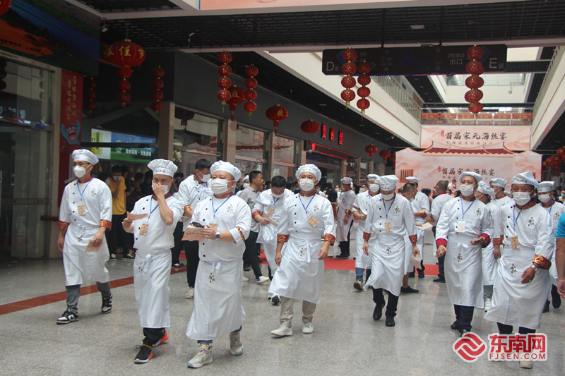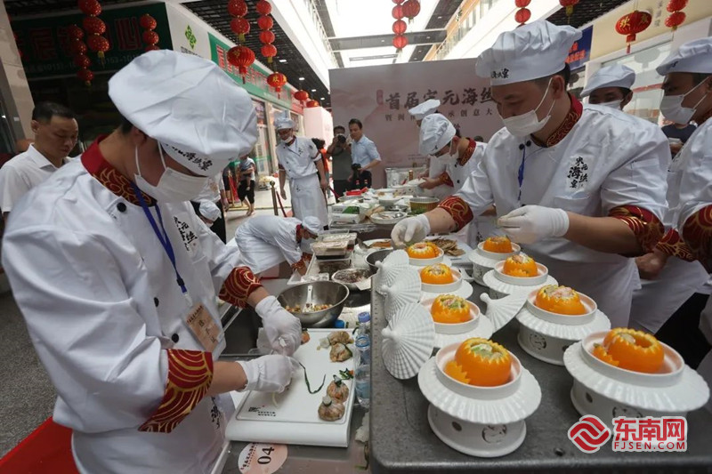 27日上午,首届“宋元海丝宴”暨闽南菜传承创意大赛在石狮启动。石狮融媒体中心 供图 东南网7月27日讯(本网记者 谢玉妹)27日上午,首届“宋元海丝宴”暨闽南菜传承创意大赛在石狮启动,来自本土的10个餐饮团体近百名厨师参赛。 竞赛分为团体赛和个人赛,海丝宴以团体赛进行,参赛团体需要在限定的时间内完成一桌“宋元海丝宴”;而闽南传承创意大赛则以个人赛形式进行,每位选手需要在60分钟内制作2道热菜。所有参赛选手需要通过现场菜品制作的方式将菜品背后的历史文化、地域特色彰显出来。 地处三面环海的半岛,石狮人向海而生、勇闯天涯,在漫长的对外经济和文化交流过程中,形成了博通古今、融汇中西的饮食文化,其中由南宋石狮籍美食家林洪所著《山家清供》,更是被称为中国历史上最早的菜谱之一,当中既有宫廷御宴、士大夫饮食、市井饮食,也有养生饮食、闽南乡愁,是宋代民间食谱的集大成者。 此次大赛融合《山家清供》,以IP化、美学感和时代性为宗旨,挖掘、复原及创新具有海丝内涵、宋元美学特征的代表性菜肴,并最终形成一席有着石狮特色的“宋元海丝宴”,让石狮特色美食尽显“舌尖上的传承”。
