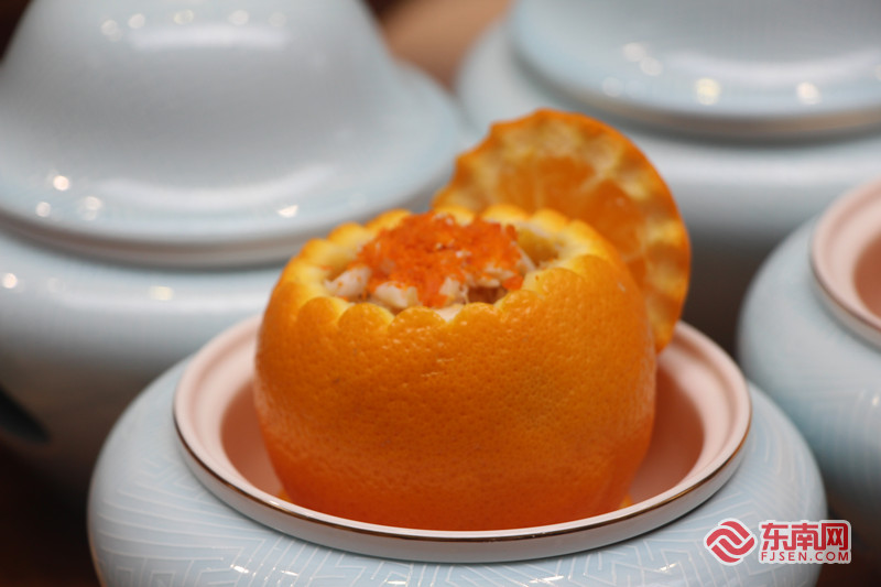 根据《山家清供》研制的“山家蟹酿橙”。东南网记者 谢玉妹 摄