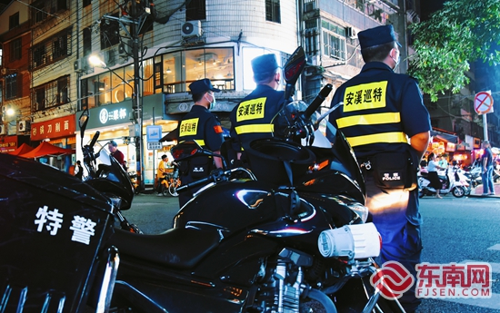 夜间巡逻。王浩钦 摄 东南网8月15日讯(本网记者 陈培源 通讯员 白鸿鑫)为有效净化夏季社会治安防控面,全力保障人民生命财产安全,近期,安溪县公安局巡特警反恐大队加强夜间巡逻,切实维护夏季夜间治安秩序。 重点提升群众夜间出行安全 紧盯下夜班以及夜间休闲、娱乐、夜宵等高峰时段,安溪巡特科学划分巡逻警力、点位、区域、线路,有针对性地加强夜间重点部位巡逻频次,并采用警力前置,驻点执勤相结合的方式,有效降低案事件发案率,切实提升群众夜间出行安全感。夜巡警力对沿街商店、居民楼、停车场附近逗留的人进行择机开展检查,适时进行敲打提醒,最大限度地预防违法犯罪的发生。
