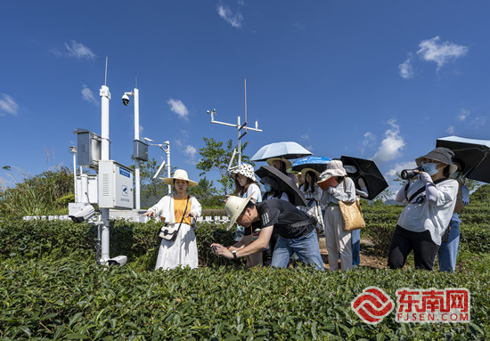 采访团在云岭茶庄园了解茶园小气候监测站情况。颜家蔚 摄