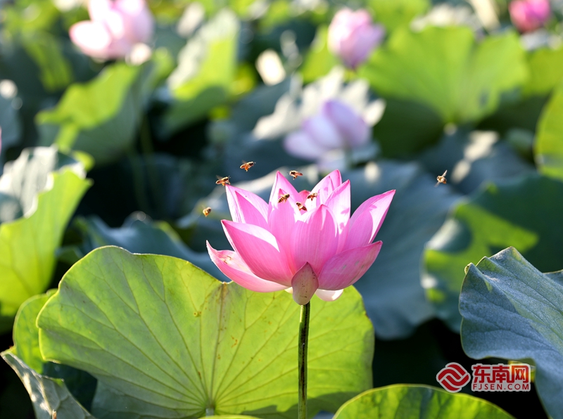 荷花园里采蜜忙。东南网记者 陈培源 摄