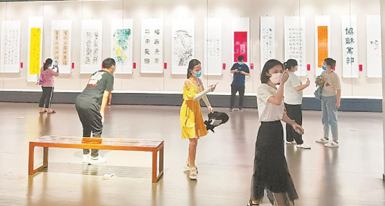 23日,“两岸同心福·喜迎二十大”闽台“福”文化书画展在泉州中国闽台缘博物馆举办。现场共展出两岸书画家的优秀作品近百件,表达了两岸同胞对幸福生活的向往和追求,彰显了“福”文化的传统意蕴和当代价值。(福建日报记者 王敏霞 摄影报道)