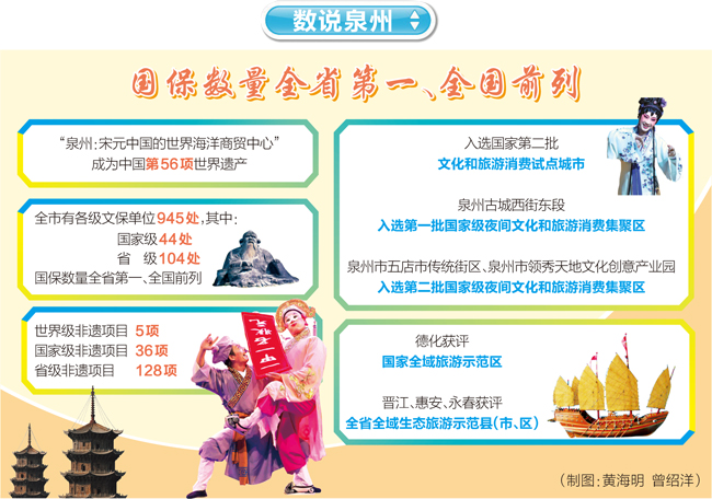 2021年,“泉州:宋元中国的世界海洋商贸中心”申遗成功,成为中国第56项世界遗产,也是国内世遗大家庭中“最年轻”成员。申遗成功后,着眼于做好“后半篇文章”,按照省委、市委安排部署,泉州以打造世界遗产保护利用典范城市为目标,统筹历史文化遗产保护与发展,让更多文物和文化遗产活起来、走近你我他。 回望漫漫申遗路,泉州申遗,在近十年按下“加速键”。十年来,爱遗护遗的城市底色愈浓。法治先行,《泉州市海上丝绸之路史迹保护条例》《泉州市中山路骑楼建筑保护条例》等一系列政策法规相继出炉;守住底线,全市建成不可移动文物信息化管理平台、不可移动文物监测系统、文物保护修缮和“三防”工程项目库等,持续提升管理水平;强化考古,与中国社科院、北京大学、省考古研究院等合作考古、建强平台;雕琢城市,开展生态修复、城市修补试点,启动古城整治提升工程,实施历史文化街区和名镇名村保护、古城街巷风貌综合整治提升。 十年来,抢抓机遇发展文旅产业经济。政策引导,《泉州市“十四五”文化和旅游改革发展专项规划》《加快推进旅游业高质量发展的实施意见》陆续出台;专班推进,成立文旅经济产业发展小组,设立8个工作专班推进文旅经济产业发展(招商)工作;系统营销,融入“清新福建”“全福游、有全福”等活动,年均举办文旅主题活动2000场以上,“世遗泉州”登上综艺平台、短视频APP,相关话题热度数以亿计。 文化遗产在泉州,逐渐成为一场沉浸式的文化体验、一种家门口的生活方式。 |