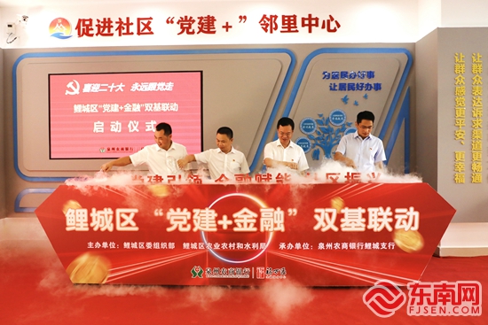 东南网9月16日讯(本网记者 施远圻)今天上午,泉州市鲤城区“党建+金融”双基联动启动仪式在鲤中街道促进社区“党建+”邻里中心举行,一批党建指导员、社区发展金融指导员拿到聘书。未来3年,他们将发挥各自专长,助力社区发展。 据了解,由鲤城区委组织部、鲤城区农水局、泉州农商银行鲤城支行联合制定的《鲤城区“党建+金融”双基联动助力社区发展实施方案》于日前印发。鲤城区将通过基层党组织与银行基层网点协作联动,把基层党建、金融服务、社区发展等工作有机结合起来,助力建设高质量“品质名城·现代都市”。