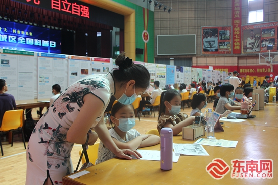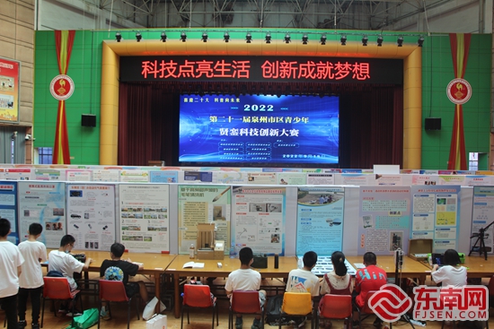 活动现场。东南网记者 施远圻 摄 东南网9月19日讯(本网记者 施远圻)9月18日上午,第二十一届泉州市区青少年贤銮科技创新大赛在泉州市第七中学举行。本次大赛共收到参赛作品181件,主要来自鲤城、丰泽、洛江三个区28所中小学。 据鲤城区科学技术协会主席潘清泉介绍,自2002年起,泉州贤銮福利基金会每年拨出一定款项,作为泉州市区青少年贤銮科技创新大赛的奖金,对大赛中的优秀作品给予奖励,旨在进一步提升泉州市区青少年科技创新水平,提高青少年科学文化素养,培养具有创新意识和实践能力的科技后备人才。同时,主办方将推荐一些优秀作品参加省、市级的青少年科技创新大赛。 “聪明”的智能垃圾收集装置、“贴心”的小龟喂食机器人、“有趣”的无纸化考试小帮手、“暖心”的幼儿园走廊智能防撞提醒装置……比赛现场,记者发现,参赛作品各有亮点,大部分作品不仅在创意上有新意,而且也贴近学生们日常生活学习。