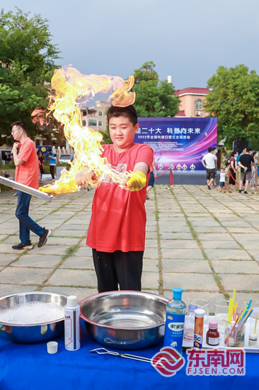 孩子在体验科学实验《火云神掌》。晋江科协 供图