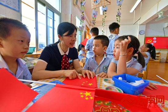 老师为孩子们讲解国旗的特征与来历。泉港区 供图