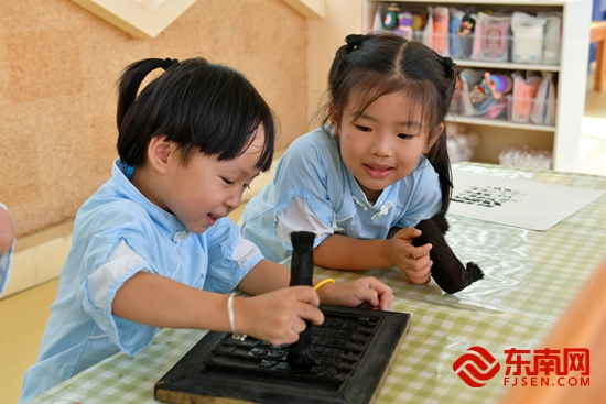 孩子们进行“中国汉字拓印”体验活动。泉港区 供图
