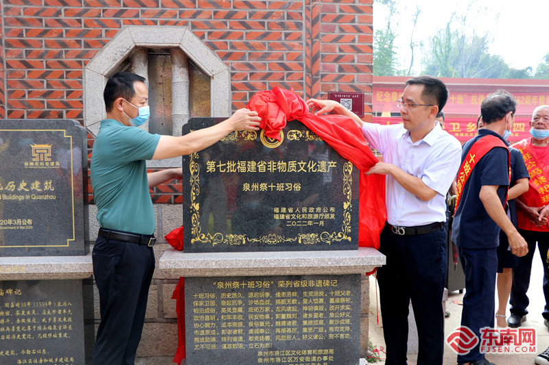 到场领导为省级非物质文化遗产代表性项目泉州祭十班习俗揭牌。东南网记者 薛逸群 摄 东南网9月23日讯(本网记者 薛逸群)9月23日,洛江区万安街道岩山公园山上举办“泉州祭十班习俗”省级非遗项目揭牌仪式活动,区相关部门领导、祭十班文化促进会部分成员到场参加活动。 岩山公园山上锣鼓声声、彩旗飘扬,到场领导为省级非物质文化遗产代表性项目泉州祭十班习俗揭牌。 泉州祭十班习俗市级非遗代表性传承人郭清海介绍,明嘉靖三十八年(公元1559年)农历八月廿八,洛阳江南岸琯头周边十个村庄,发生了一起倭寇入侵事件,民众遭受残杀,当时汉回乡民奋起反抗,殊死搏斗,几乎全歼这批入侵之敌,令倭寇闻风丧胆,城东无复倭患。是日罹难民众上百,可辨者择地入殓,余葬在琯头旷地上,并建“十班公妈”墓庙奉奠,并定于每年八月廿八为祭祀日,起初由官祭后改为民祭,“十班公妈”已成为当地人们心目中的神圣,祭祀活动也流传至今。460多年来,“十班公妈”墓庙的庄重祭祀典礼,从未间断。当下,福建省政府将“泉州祭十班习俗”列为省级非遗保护项目,民间又成立“泉州市洛江区祭十班文化促进会”,项目赋予爱国主义教育功能,得到更好的传承。 2022年1月29日省政府公布,该项目被列入第七批省级非物质文化遗产代表性项目。该项目为更好地传播爱国爱乡精神,发挥祭十班习俗抗倭纪念碑爱国主义教育基地的作用,提供了强有力的保障。 洛江区文体旅游局局长吕培基表示,多年来非遗“泉州祭十班习俗”传承人在公益性活动节庆日、非遗日组织以祭十班为主题进校园、进课堂、进社区等活动;并创作了以十班抗倭为主题的现代歌曲《十班抗倭颂》和南音说唱《琯头抗倭》;编演了十班抗倭相关的童谣、快板、朗诵、大合唱等节目;拍摄纪录片,编著图书;并冠名参与了区宣传部、教育局等部门举办的书法、征文等活动,广泛传播,提升了祭十班习俗的知名度,提高了影响力,扩大了受众面,高效弘扬了爱国主义精神。 据了解,此次举行揭牌仪式,是为了更有效保护和传承非物质文化遗产,鼓励和支持非物质文化遗产代表性传承人开展传习活动。 |