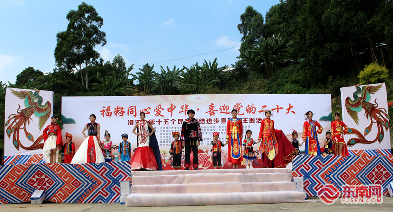 畲族图腾服装秀《凤》。 东南网记者 薛逸群 摄 东南网9月24日讯(本网记者 薛逸群)花开八闽石榴红,福籽同心一家亲。9月24日,“福籽同心爱中华·喜迎党的二十大”洛江区第十五个民族团结进步宣传月主题活动在河市镇厝斗畲族村举办。 现场,一曲充满少数民族风情的歌舞表演《福籽同心》拉开了活动的序幕。洛江区委统战部、河市镇党委有关领导上台致辞。 随后,畲族图腾服装秀《凤》、歌舞表演《三月三,九月九》《醉畲乡》《对山歌》《纳西情歌》《六口茶》《丰收舞》《远方的客人请你留下来》等节目轮番上演,展现了各民族绚丽多彩的优秀文化,热情讴歌了各族儿女和睦相处、和衷共济、和谐发展的幸福生活。全场大合唱《美丽的中国》更是将现场气氛推向高潮,慷慨激昂的旋律、铿锵有力的声音久久回荡。 近年来,洛江区紧紧围绕“共同团结奋斗、共同繁荣发展”的民族工作主题,全面落实党的民族政策,积极促进各民族交往交流交融,有效衔接乡村振兴发展战略,建设畲族文化馆、文化长廊,打造多彩畲寨。2018年,厝斗村被确定为福建省第四批少数民族特色村寨试点村,2021年厝斗村获评福建省民族团结进步模范集体。 下阶段,洛江区将以此次宣传月活动作为推动民族团结创建工作的主抓手,进一步提高政治站位,把民族团结进步宣传作为一项凝聚民心、汇聚力量的重要工作常抓不懈;精心谋划组织,开展形式多样、内容生动、贴近生活的民族团结进步创建活动;务求活动实效,通过实实在在的项目、实实在在的资金、实实在在的措施帮助少数民族群众改善生活,多为群众办实事、办好事,奋力开创民族团结进步事业新局面,谱写民族团结进步事业新篇章,为党的二十大胜利召开营造和谐稳定的社会环境。 本次活动由泉州市委宣传部、市委统战部、市民族宗教局指导;区委宣传部、区委统战部、区委乡村振兴办、区民族宗教局、区文体旅游局、区教育局,河市镇党委、政府主办。 |
