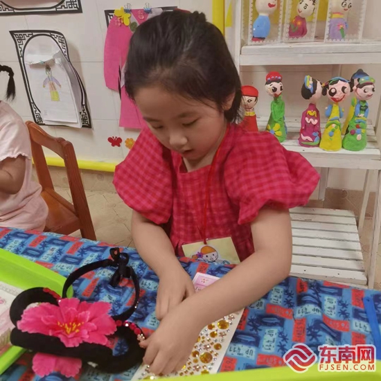 孩子学习制作梨园戏演员头饰。幼儿园 供图 该学园大2班选的就是梨园戏,除了在艺术领域中学习表演梨园戏、画戏曲人物外,老师们会在健康领域让孩子做梨园戏曲操、科学领域中让孩子学习舞台布置、语言和社会领域引导孩子讲解介绍梨园戏曲。 “通过此次研学活动,我们更深入了解梨园戏曲知识,发现此前教学中戏曲的服装以及乐器这两部分教得不够深入,所以在今后的教学中我们会对这两部分内容进行完善,让孩子们更深入了解梨园戏。”大2班教师李春红告诉记者。 黄晓军表示,幼儿园将继续做好教师研学工作,让老师深入学习了解闽南文化;并引导老师将闽南文化融合到区域活动中,让孩子们深入了解闽南传统文化,在孩子幼小的心灵种下热爱家乡文化的种子。 |
