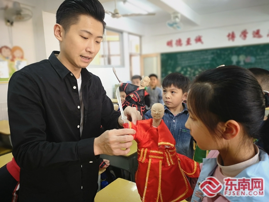 学生们学习掌中木偶表演。学校 供图 东南网10月12日讯(本网记者 施远圻)“我喜欢看掌中木偶戏,可以听到有趣的故事。”“我觉得陶艺制作有意思,能锻炼动手能力。”……近日,泉州市第二中心小学的孩子们填写了一份简单的问卷调查,选择自己喜欢的一项闽南文化。他们的答案将直接关系到学校确定哪项闽南文化作为校本课程。 据了解,问卷调查中包含掌中木偶、南音、五祖拳、陶艺制作、乡音吟诗等5个项目,为学校课后服务的特色课程。“这学期我们想选择一两项闽南文化作为校本课程,让更多学生深入了解闽南文化,兴趣是最好的老师,学校将选择权交给孩子。”学校校长李菁介绍道,掌中木偶收获学校近50%学生的喜爱,成为学校的校本课程之一。 就读五年级的李诗贤在问卷调查中选择的就是掌中木偶这一项目,从三年级便开始接触学习掌中木偶的他,经常与同学分享自己学习掌中木偶的趣事,他希望能让更多同学了解并喜欢这项传统文化。“掌中木偶操作起来好像挺简单的,可是要配合上台词、动作,将情绪表达到位,就很难。”李诗贤说,每次在排练时,他都重新理解“台上一分钟,台下十年功”这句话。 同为五年级的学生赖雅妍没学过掌中木偶,可她喜欢看掌中木偶戏,经常从演员身上学到一些有趣闽南俗语。得知掌中木偶成为学校的校本课程,她很高兴,期待能在学校里看更多有趣的掌中木偶戏。 |
