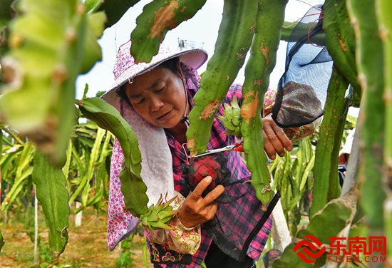 果农忙着采摘成熟的火龙果。洪坤泽 摄 东南网10月14日(通讯员 洪坤泽 本网记者 黄雨昕)近日,记者走进泉港区涂岭镇白潼村的榕泉和果园,上百棵郁郁葱葱的杨桃树映入眼帘,一颗颗果实不断生长,静待成熟。不远处,成熟的柠檬青中带黄,散发出独特的清香,而在火龙果种植区域,颗颗饱满的红色果实挂满枝头,果农们带着篮子穿梭其间,采摘果实。 据了解,榕泉和果园占地100多亩,主要种植杨桃、柠檬、台湾芭乐、火龙果等水果,一年产值近200万。果园发展起来后,给周边农户带来了增收机会。 “我们在农闲之余会接受果园聘请,进行除草、施肥、护理和采摘果实等工作,离家近的同时也能增加自己的收入。”正在采摘火龙果的蔡阿姨介绍说。 |