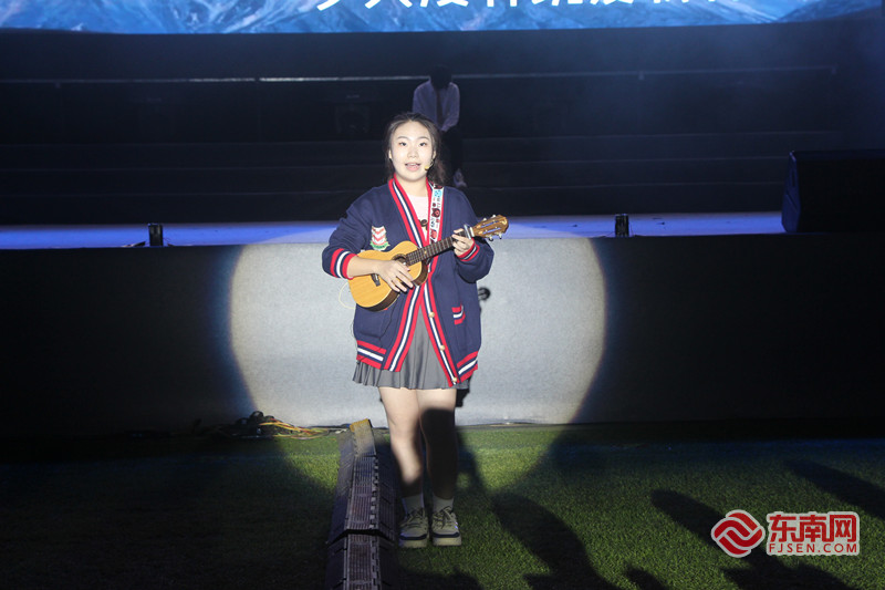 校团委表演的歌曲串烧《青春修炼记》。东南网记者 谢玉妹 摄