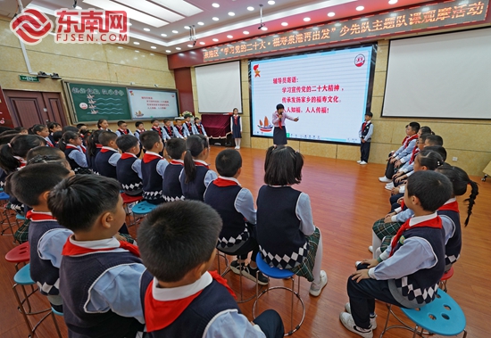 泉港庄重文实验小学的少先队辅导员正在为少先队员讲解泉港福寿文化。郭菲凡 摄 东南网11月16日讯(本网记者 黄雨昕 通讯员 郭菲凡)“学习宣传党的二十大精神,传承发扬家乡福寿文化……”近日,“中国长寿之乡”——泉港区举办“学习党的二十大精神·福寿泉港再出发”少先队主题队课观摩活动。通过师生共学互动、沉浸式体验“福之味”“福之景”“福之艺”“福之孝”等泉港福寿文化,开展传承家乡福寿文化“传承章”争章活动等,进一步引导和增强该区少先队员从小热爱党、热爱祖国、热爱家乡的荣誉感和归属感,汇聚起新时代少先队员的昂扬力量。 |